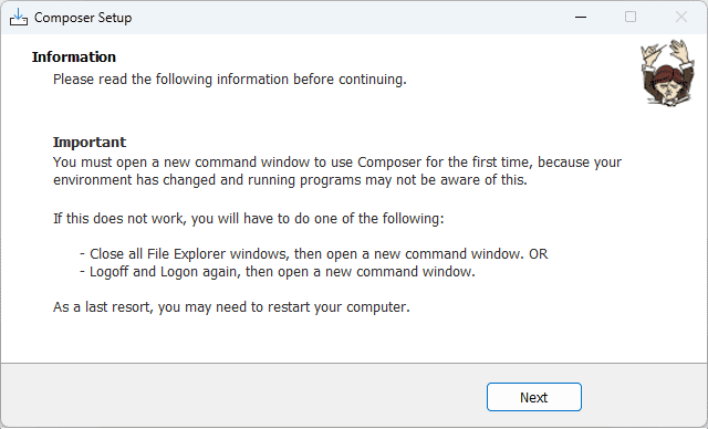 На данной странице описывается установка Composer для Windows. Composer можно устанавливать локально: файл приложения Composer устанавливается в выбранную папку и команды действуют только в области данной папки. И глобально: файл приложения Composer устанавливается инсталлятором автоматически и создается переменная среды composer, доступная в пределах всей операционной системы.
